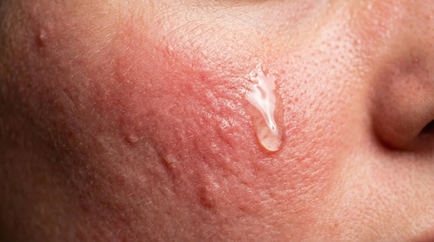 Sekunden später greifst du zum nächsten Fläschchen. Ein saures Peeling, BHA oder vielleicht eine flüssige Milchsäure, um die Poren zu befreien. Plötzlich wird aus dem erwarteten sanften Prickeln ein messerscharfes Stechen. Dein Gesicht brennt wie Feuer, eine hitzige Röte kriecht deinen Hals hinauf, und unter der Hautoberfläche pocht sofort eine schmerzhafte Spannung. Panisch wäschst du alles mit eiskaltem Wasser wieder ab.